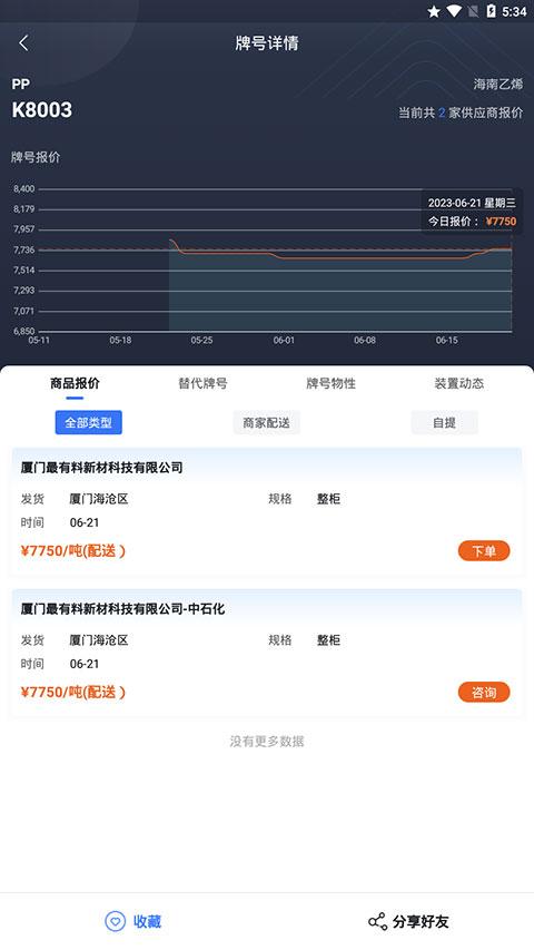 4、好价推荐:实时更新原料价格信息,把握市场行情,更有不定期特价牌号抢购,买料更省。