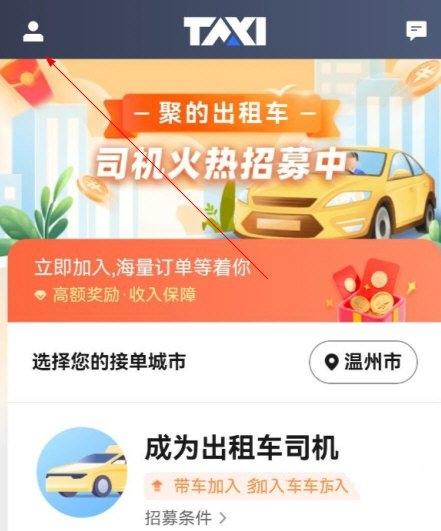 1、打开聚的出租车车主端app,点击左上角“用户”图标。