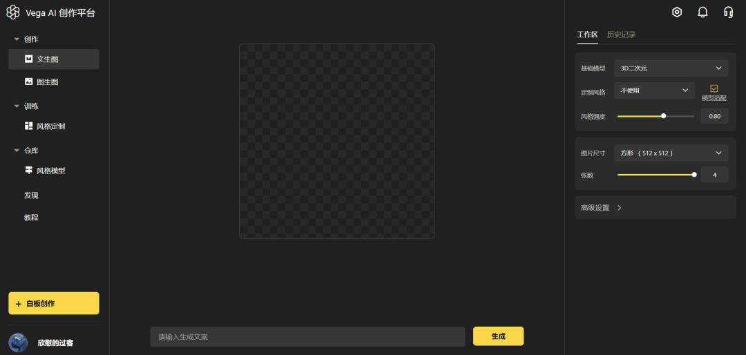 功能非常强大可以轻松体验ai创作乐趣的一款神器,Vega ai创作平台,软件中功能是免费的,还可以根据你的风格定制出专属的效果,软件简单好用,使用微信登录就可以操作,支持文字生图的功能,设置基础模型就可以定制出你想要的图片。
