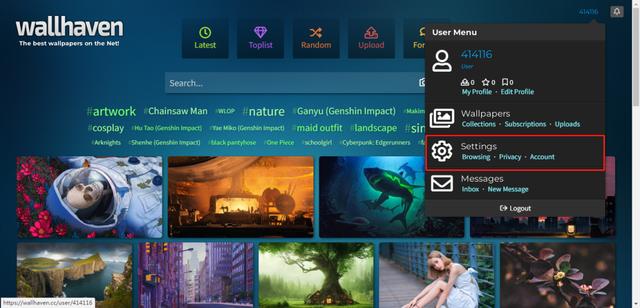 1、Wallhaven打开后,我们可以看到很多精美的图片,包括了a站、p站的所有图片资源,体验效果特别好。
