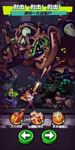 不要忘记在危机情况下使用物品。治愈包紧急恢复所有生命值,疯狂模式加速你的攻击,以疯狂的速度屠杀僵尸大军。你面对着铺天盖地的丧尸大军,但不要惊慌,冷静呼叫并向卫星导弹求援。