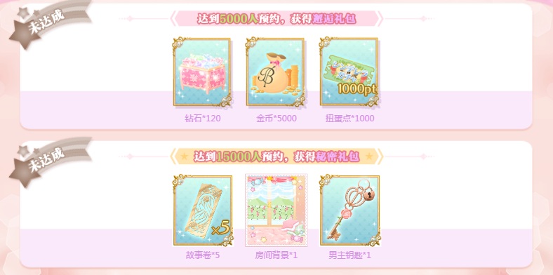 “爱的乐章”为所有进行公测预约的玩家准备了丰厚的礼包奖励,当预约数量分别达到:5000、15000、30000、50000人时,不同的礼包将依次解锁。礼包内容包括专属时装、专属勋章、专属摆件、故事卷,以及其他丰富的游戏道具和钻石、金币等奖励。详细情况请直接点击预约地址查看。