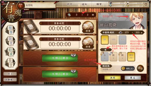 有魂书建造 ,使用洋墨进行潜书,洋墨的数量与赌出文豪的稀有度据说有关。进行有魂书潜书的文豪不能出战和修补等,也不能设为助手。