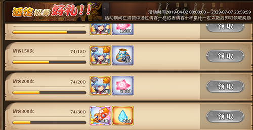 活动说明:通过酒馆进行招募达到目标次数后可领取各种丰厚奖励!