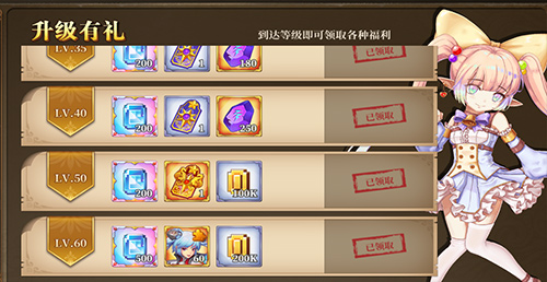 活动说明:每当角色达到指定等级,即可在“福利”-“等级礼包”界面领取。
