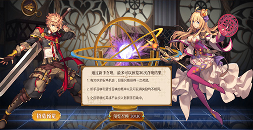活动说明:新角色等级达到10级后,点击主界面“萌新30抽”图标即可参与活动。活动共有30次10连抽机会,当抽到心仪奖励后即可直接免费领取!SSR角色、金色品质礼装全都有机会获得!