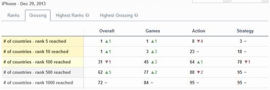 对于一款COC高仿作品而言这样的成绩已经十分优异,但其同时在IOS市场上的表现与GOOGLEPLAY形成了强烈的反差,在收入榜上进入前五名的地区仅仅只有坦桑尼亚这样的一个小国。而之前在免费帮迅速登顶的日本地区目前也已经划出了10名开外。《Castle Clash》在市场上两大平台上的表现出的巨大差异也着实让人惊讶,看来想要全面撼动COC仍然是一场艰难万分的战斗。