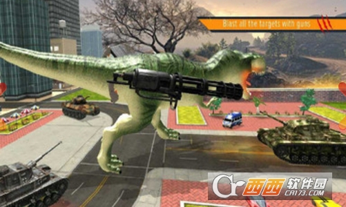 恐龙战斗模拟是一款3D恐龙模拟战斗游戏,游戏中玩家操控满身武装的恐龙来参与作战,享受破坏和射击游戏的乐趣,装备高级武器,还可以通过升级来强化战力,还有选择不同的地图场景来作战,喜欢这款模拟游戏的玩家赶快下载吧。