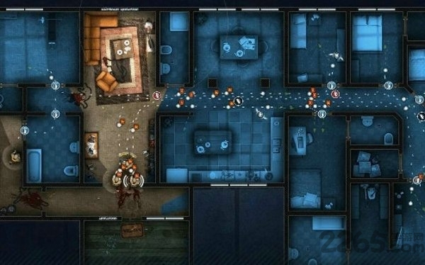 1、游戏采用了俯视视角,在游戏中控制反恐队员强攻恐怖分子,游戏的操作比较简单,按住并拖动反恐队员用来规划他的行动路线,不过这款游戏对队员之间的配合度要求很高,需要仔细研究前进路线才行。