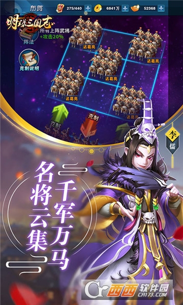 《明珠三国志福利版》是一款以三国历史背景为题材开发的卡牌SRPG游戏。