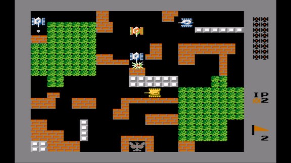 非常经典好玩的坦克大战,进入游戏后有“TANK I”至“TANK XIV”十四个选项,按U键还可切换另外十四种玩法,所以总共是28种玩法。其中选择I-VII玩法敌方坦克不能吃宝物,选择VIII-XIV玩法敌方坦克可以吃宝物。游戏中有“枪”和“船”等宝物,吃两个“枪”可以消草,吃“船”可以过河。