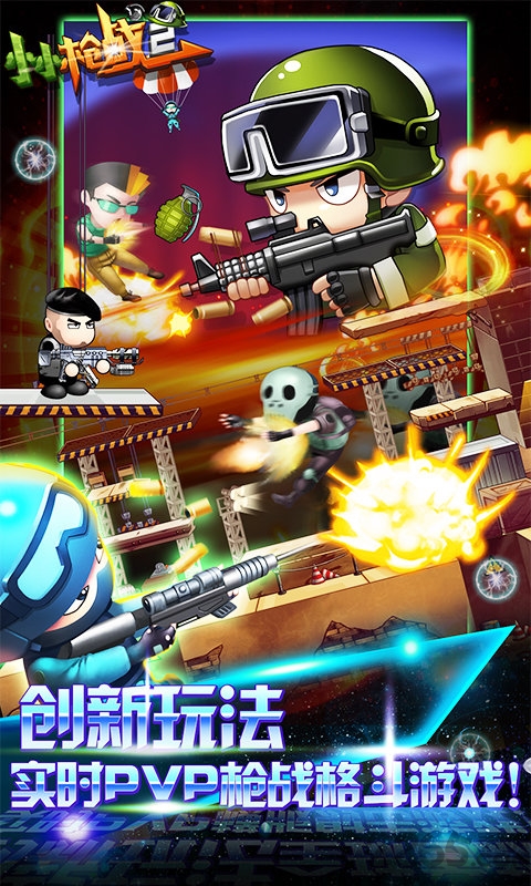 小小枪战2qq版创新战格斗游戏,正统续作震撼来袭! 回馈全球1000万小小枪战迷和广大CF,CS玩家的的诚意之作清新亮丽的画面,可爱炫酷的Q版角色等特色基础上进行了大量革新和升级!经典战斗模式、语音对话、枪支弹药和Q版人物造型,给您带来全新精品的实时PVP枪战类游戏,快来体验多人战斗炫酷的场景,感受刺激实时对战的厮杀吧!