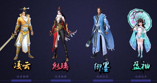 凌云以剑为武器,用娴熟的剑术和华丽的技能进行战斗,最为霸气勇猛的角色。魅璃是暗影的主宰,他们潜伏于阴影之中,秉持敌明我暗的理念,伺机向敌人瞬移和束缚发动最猛烈的攻击。盈袖娴熟的控制和非凡的符咒而自豪,在战斗中拥有卓越的远程法术攻击能力,是一流的法术远程。御墨强大的御墨施展出来的法术甚至能够在顷刻间举火燎天,毁灭性的力量永远是御墨留给世人最深刻的印象。