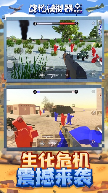 战地模拟器单机版游戏是一个有趣的射击战斗游戏,游戏中的画面采用卡通风格,可以带给玩家舒适的视觉体验感。在这里有着广阔的场景可以不断的冒险战斗,你可以拿起手中的武器去消灭更多人。多种不同的枪械武器可以自由搭配,各种激烈的战斗场景随时都能加入。