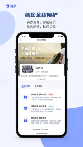 优享陪诊app这里提供比较全面的智能线上健康医疗服务,你完全可以在这里解决自己的所有健康医疗问题,对于医护人员也都可以大大的提升医疗效率,各种各样的健康医学知识这里都可以快速的帮助各位解决,你所关注的健康问题每天也都能够和各位一起分享,有需要的话可以直接来下载,在这里享受更多健康医疗服务和相关的帮助哦。