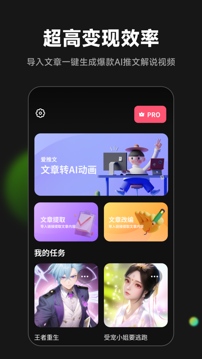 1、爱推文将小说转换为动漫解说视频,轻松进行创作