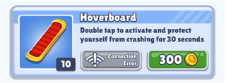 双击屏幕可启动滑板道具,如果在没有启动滑板功能的情况下,角色撞上障碍物或者火车游戏就会结束,而在滑板状态下,等于给角色买了保险,滑板会在撞到障碍物时消失,但游戏可以继续进行。滑板在消失后的几秒内出现冷却时间,当闪烁结束后可通过双击再次启动,没有次数的限制。
