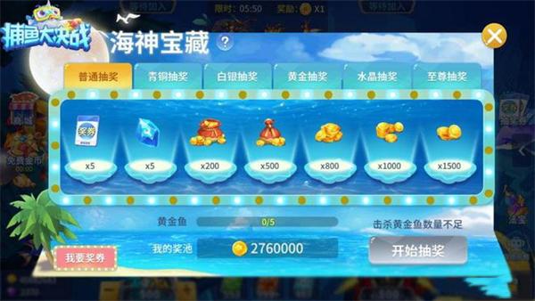 3、惊喜奖励模式上线, 捕获boss鱼即可获得对应奖励。