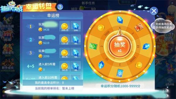 新手任务是建议每一位捕鱼萌新都要做的。因为新手任务不仅有强化石奖励,还有法宝奖励,奖励可谓是非常丰富多样的。完成特定任务还能获取抽奖机会,可以随机抽取金币、捕鱼道具、强化石等奖励,同时还能随机获得积分参与排行榜(也是奖励强化石的噢)。