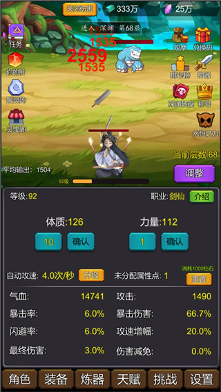 4、精炼升级,进化到更高的等级,你的属性会发生变化,随着招式的释放,伤害会爆炸