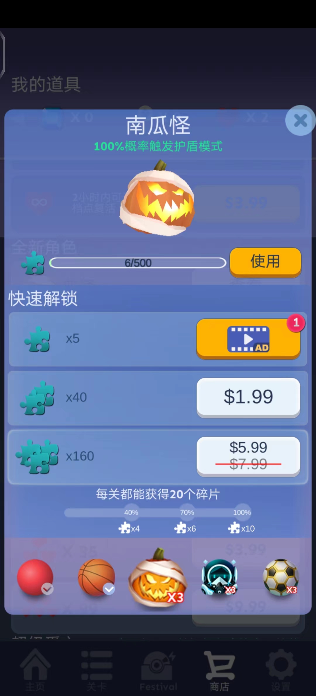 2、在关卡中*到达40%,70%,100%可分别获得4碎片,6碎片,10碎片;