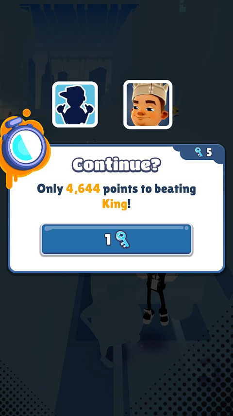 6、我们也可以选择使用钥匙,获得一次复活的机会,继续跑酷。
