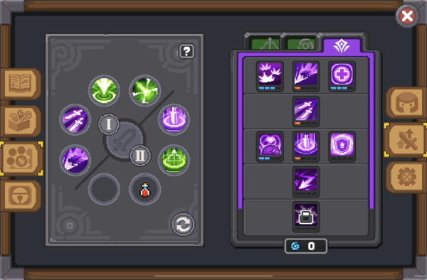 《元气骑士新作》的装备界面有着一种浓郁的RPG游戏风格,尤其是头盔、盔甲、武器、靴子、首饰、腰带的装备组合简直是再经典不过,既有《暗黑破坏神》的怀旧,也有《火炬之光》的Q萌,相信就算是手游新手也会做到第一时间上手。
