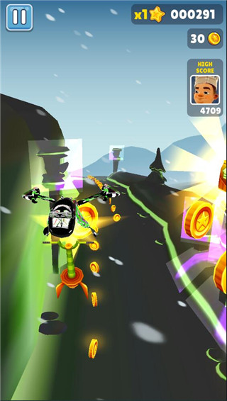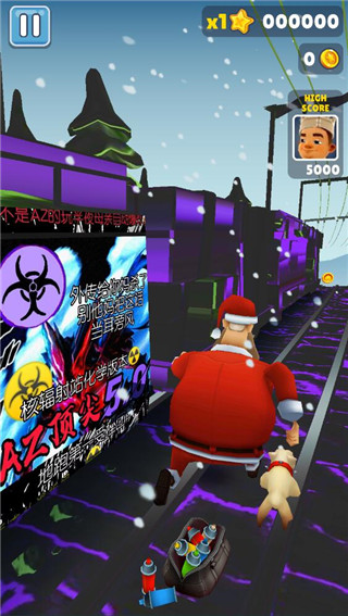 地铁跑酷az高层5.0版本是az战队专属的定制版本,根据地铁跑酷官方旧版本修改而来,游戏定制了一副全新的暗色地图,整体采用紫色为主的设计元素,同时空中还伴有飘雪的动效,可以给玩家全新的游戏体验。玩法和官方基本保持一致,通过控制角色躲避障碍并且拾取赛道上的金币,跑得越远所取得的跑分就越高,同时游戏提供了各种道具,助力玩家取得更高的分数,相比官方版主角杰克碰到障碍后还可以获取复活的机会,从而可以让玩家跑酷取得更高的分数,给玩家更好的游戏体验。另一方面,游戏定制了一款全新的杰克形象,身着迷彩装,还有多款免费的滑板可以自由选择,如果你是一名忠实的地铁跑酷粉丝,那么这款定制版可不要错过了哦,期待你的下载体验。
