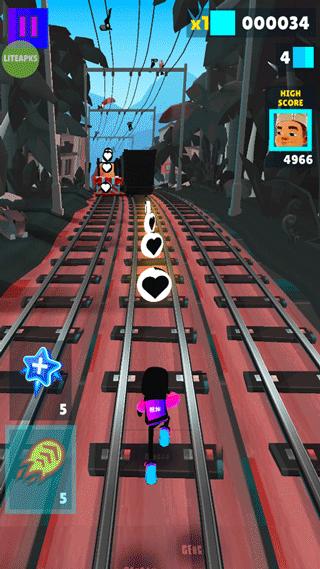 4、道具是帮助你得分的好帮手,有磁铁、跳鞋、撑杆、飞行背包、双倍得分,每一款都有不同的功能。