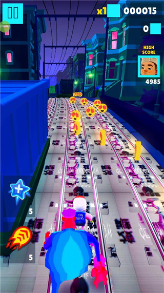 另一方面,地铁跑酷根灿8000公益版本的玩法整体还是一样,主要通过滑动屏幕来躲避障碍,但是提供了可以免费复活的机会,可以助力玩家跑得更高的分数,最后,游戏内还自带内置菜单,玩家可以自行修改游戏的一些设定,增添了游戏的趣味性以及自由度,喜欢地铁跑酷游戏的玩家不要错过了这款稀有的定制版哦,感兴趣的用户快来下载体验吧!