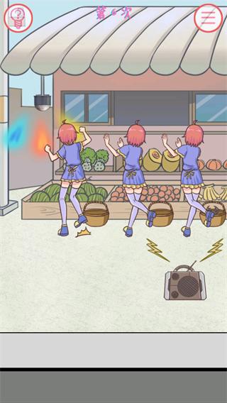 6、打开音响,跳广场舞,三位大妈会放下篮子,中间篮子里有灯罩,灯罩给屏幕右上角的杆子。左边第一个会蹦迪,就是她。