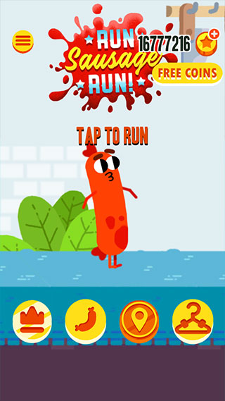 1、收集沿途的金币,不断的前进直至通关。2、点击界面可让香肠弯腰躲避障碍,同时速度也会加快。