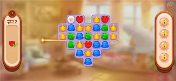 4、可以通过三消游戏来获得金币钻石这里就可以购买我们所需要的家具;
