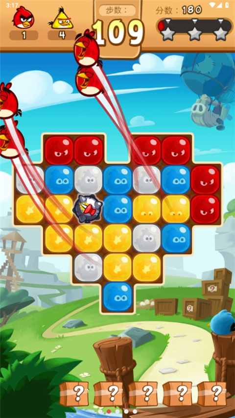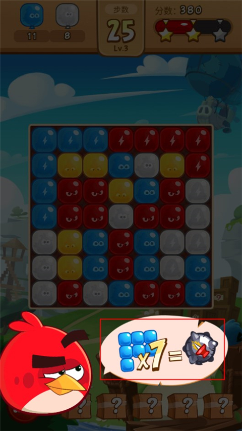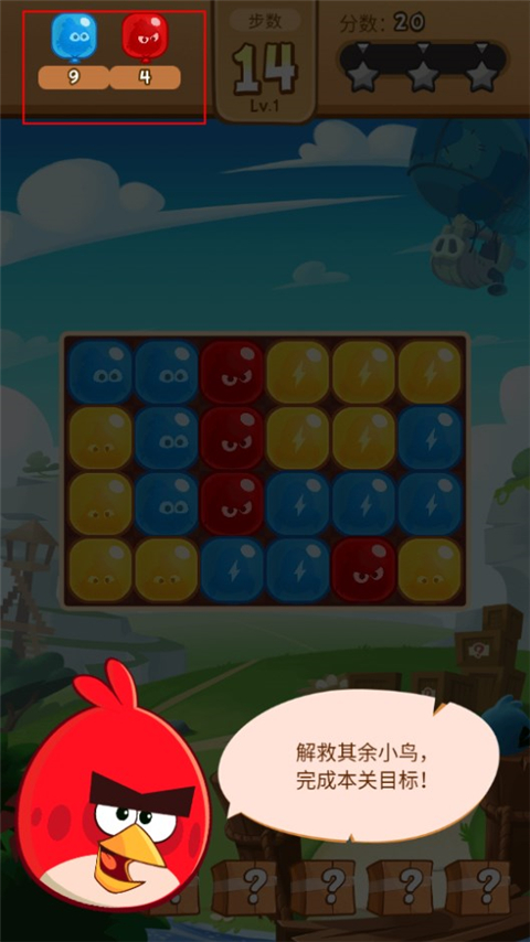 1、在本站下载安装并打开愤怒的小鸟爆破游戏,进入游戏,两个及以上相同颜色的气球即可进行消除。