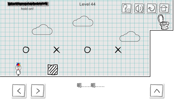 第一关,非常简单,按着右键到达马桶就可以了;第二关,需要在路面断裂处按两下跳跃就能通过;