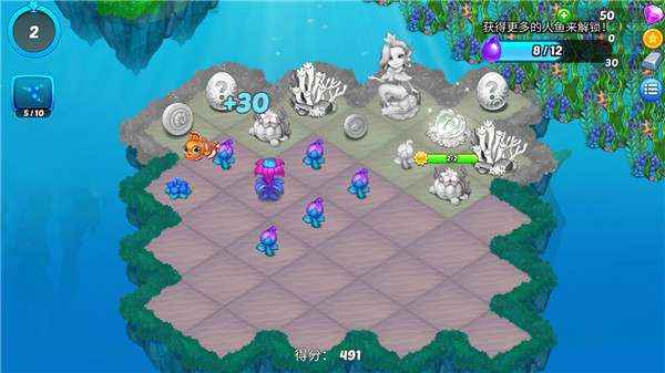 3、合并房屋以建造更多的美人鱼房屋,合并宝藏以换取更多美人鱼的巨额财富。