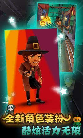 《地铁跑酷》特兰西瓦尼亚版围绕万圣节的惊悚气氛展开,来到这里你将置身诡异的黑夜,轨道间若隐若现的鬼火及白面雕塑伫立的隧道,绝对让你尖叫万分!特兰西瓦尼亚是座充满都市传说的城市,吸血鬼鼻祖德古拉伯爵的故乡便是于此,吸血鬼城堡、罗马尼亚哥特式建筑等众多神秘的元素都吸引着猎奇者的目光。