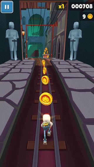 收集硬币是获取高分和购买角色、道具的重要途径,要尽可能多地收集硬币。