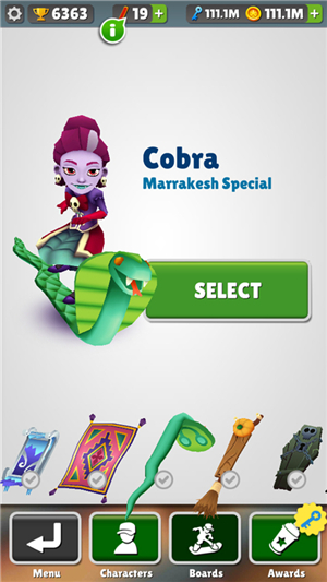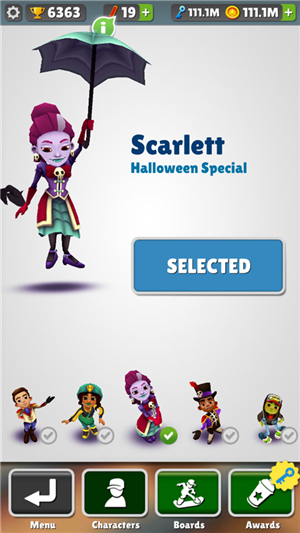 3、滑板和人物都进行了解锁,玩家可以随意选择。金币和钥匙也是无限的,在游戏内任意使用。