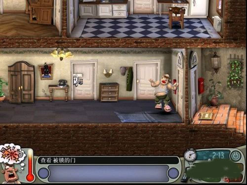 玩家的目的就是整蛊旁边的邻居,并且不能被发现,整蛊次数越多,难度越大,所以越后面越要小心!在整蛊邻居1游戏在开始时,会有3关教学关,教导你如何使用物品,如何行走,如何整人,游戏在后继的关卡将有不同的难度,玩家尽可能利用房屋中隐藏的道具捉弄屋中的邻居,每个关卡根据不同的道具将会使得邻居引起不同的生气值,而游戏的目的就是让其发狂发飙。那你能成功完成这一目标吗?快来试试吧!