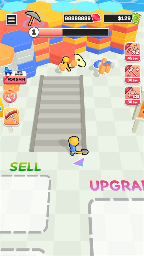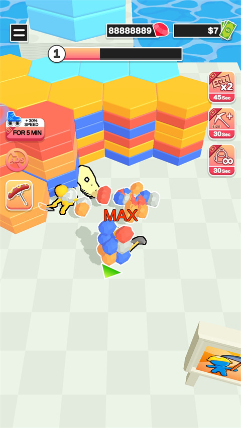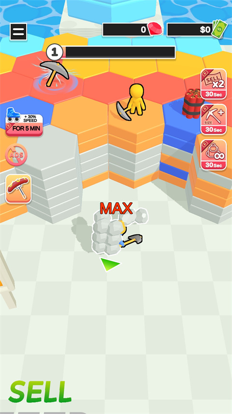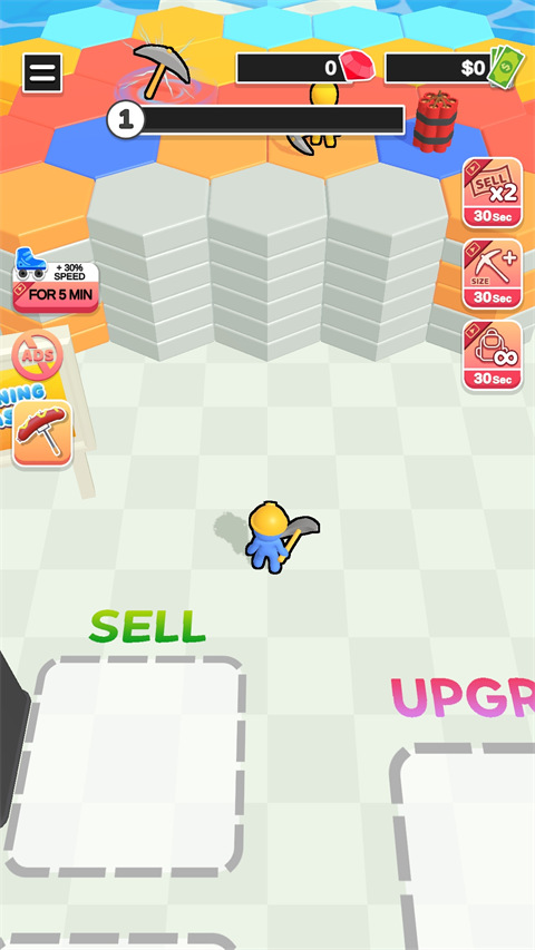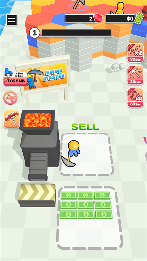 采矿大师游戏是一款休闲挖矿采集手游,游戏在画面上采用了3D卡通画风,整体画面精致,色彩鲜艳,辅以Q萌可爱的火柴人角色形象,以及逼真生动的游戏音效,为玩家带来非常好的游戏体验感!在采矿大师游戏中你将加入这个挖矿采集队伍,搜集更多的员工道具,集结小人进入矿山开启你的采矿工作,完成一波波矿物搜集。除此之外,采矿大师游戏玩法简单有趣,容易上手,起初我们需要去采矿,就是那些六边形的物体,达到max值之后就可以去出售,然后可以获得钞票,钞票可以用来升级自己的移动速度,背包容量,以及挖矿速度,在这期间你也可以让别人来和你一起挖,然后还可以挖到恐龙化石,可以进行展示,到了后期有钱之后还可以换不同的挖矿工具。喜欢的玩家不妨下载体验一下试试看吧!