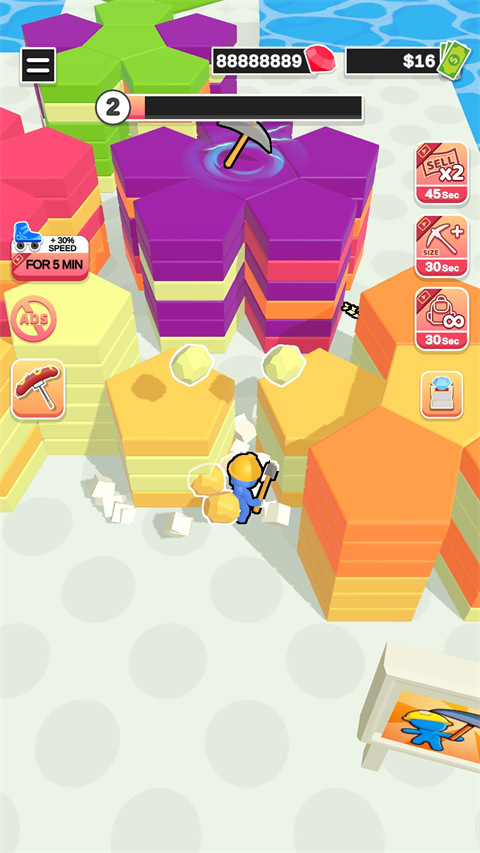 4、每一个场景你都能体验不同的挖矿乐趣,每一个矿产都有不同的价值,你需要更加合理的进行选择。