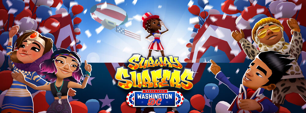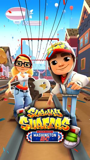 《地铁跑酷》(Subway Surfers)是一款由Kiloo和SYBO Games开发的无限跑酷游戏。游戏最初于2012年发布,适用于多个平台,如iOS、Android、Windows Phone等。《地铁跑酷华盛顿特区版》将带您进入美国的首都,探索华盛顿特区独特的城市风景和地标。在地铁跑酷华盛顿国际服中,您将扮演一名涂鸦艺术家,从一开始就在地铁轨道上冲刺,同时躲避警察追捕、跳过障碍物,以及收集硬币和特殊道具。