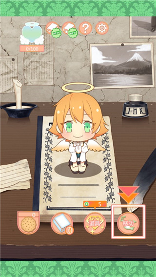 4、开始游戏就能获得5个道具,就是宝石之类的,帮助天使更快的成长,移动到商店可以购买“游戏配置道具”,集齐5个就能获得一次彩蛋时间,或者恢复经验值