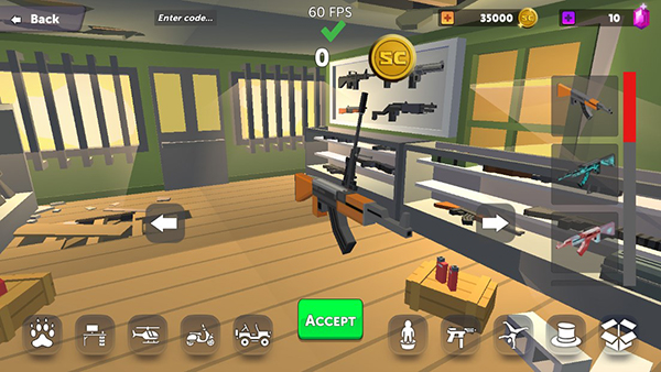 玩家点击左边的SHOP即可进入商店,可以购买武器、车辆等物品。