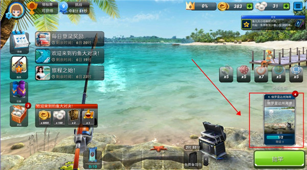 1、打开游戏进入游戏后,我们首先点击此处选择合适的鱼饵