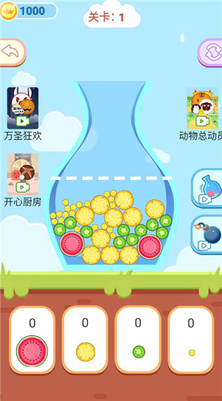 4、玩家需要将所有的西瓜水果装进瓶子里就可以通关啦。