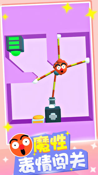 1、简单有趣,毫无上手难度,仅需玩家轻松单指滑动,划启乐趣。2、点击橡皮人的一手或脚移动至目标墙体,反复操作至目的区域。