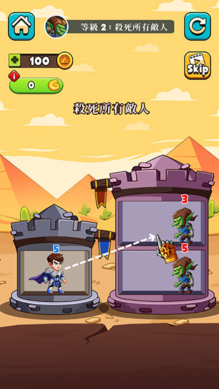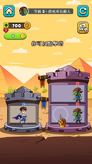2、只要英雄头顶的战力数字大于敌人的数字,即可成功击败敌人。