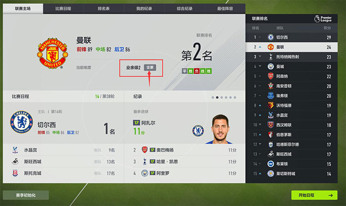 个赛季之后同台竞技的球队会有所变化。同时玩家也可以在联赛界面中向下选择已经征服过的难度哦!